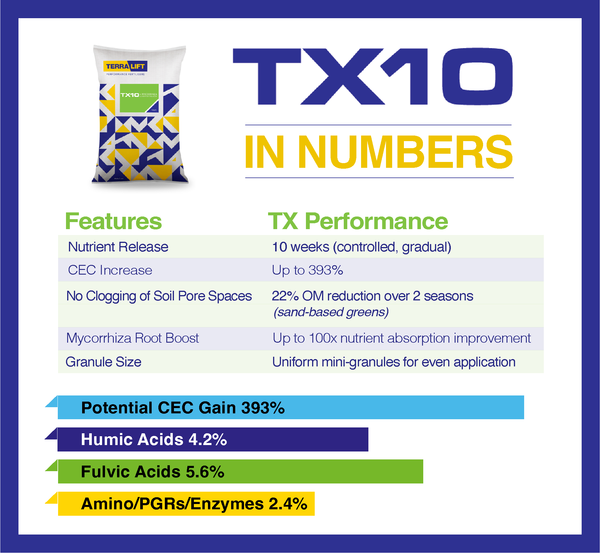 Trials show TX10, unlike regular organic fertilisers, actually reduces soil organic matter.Engineered for Consistency: